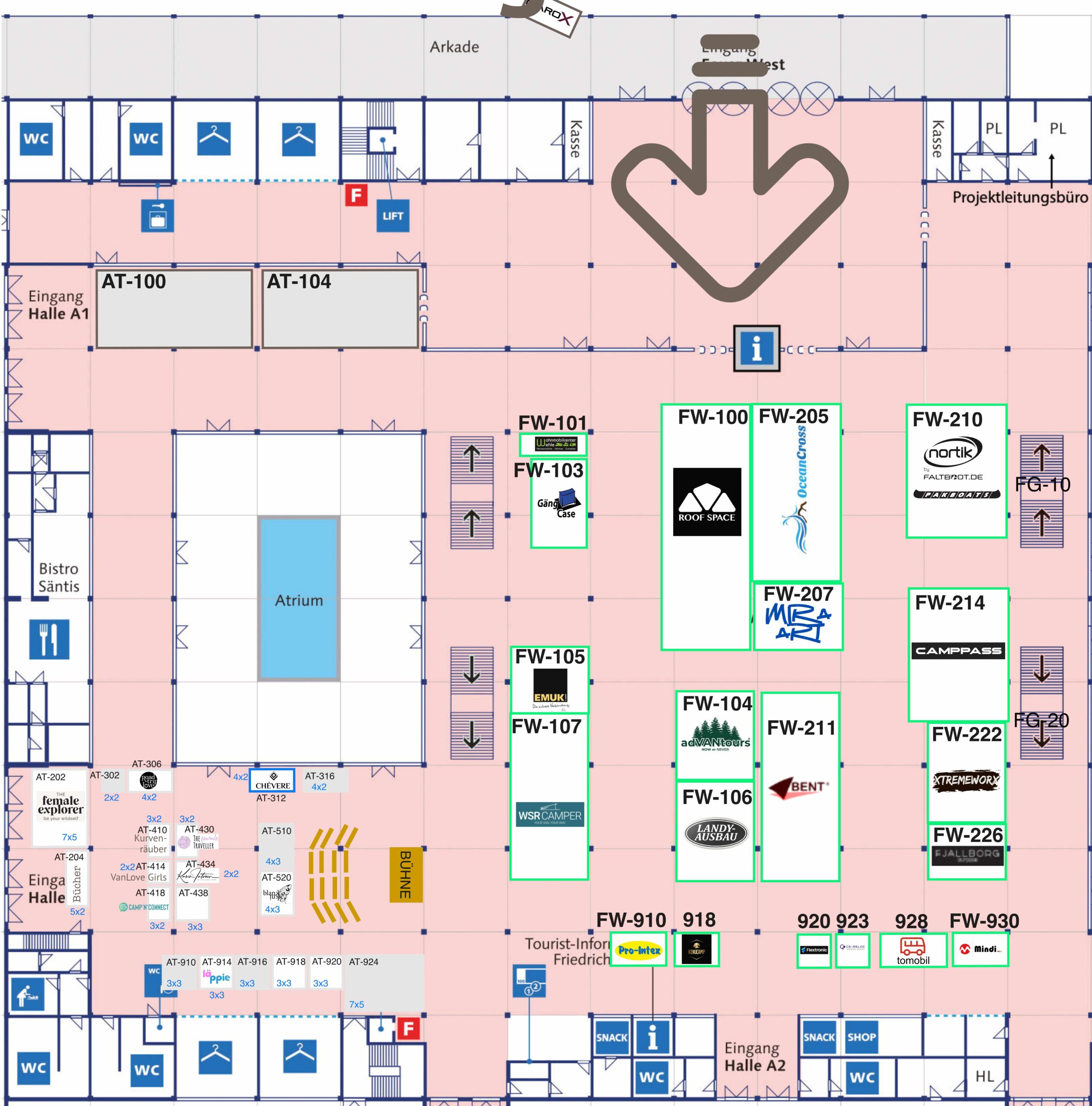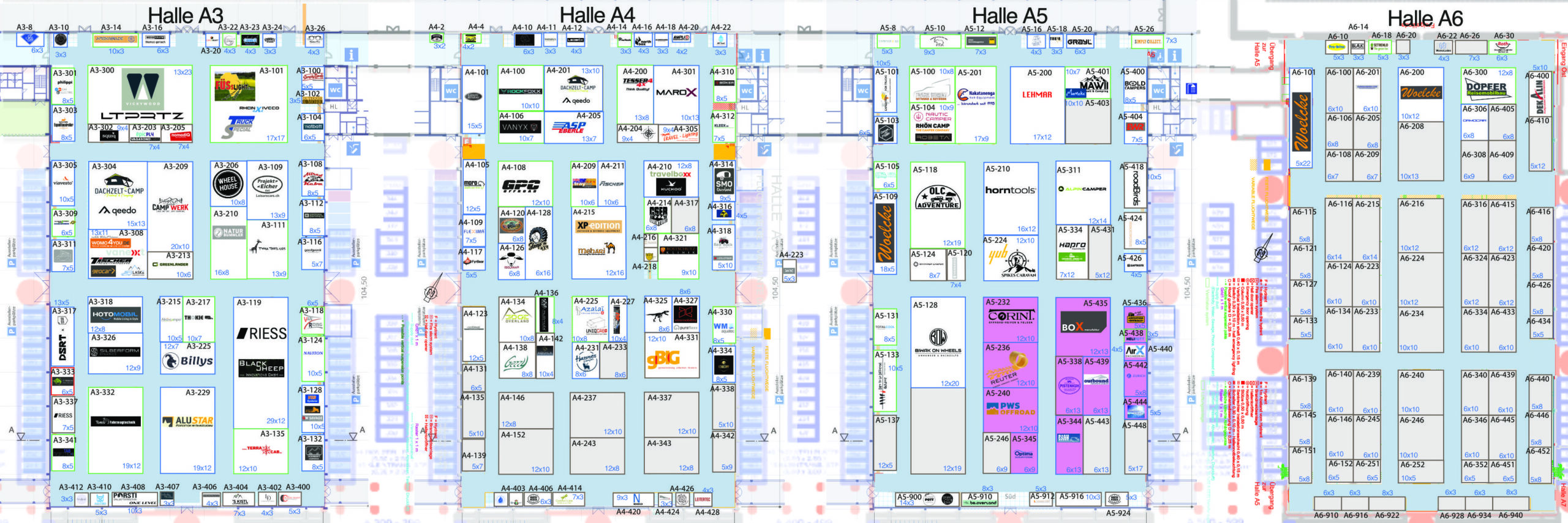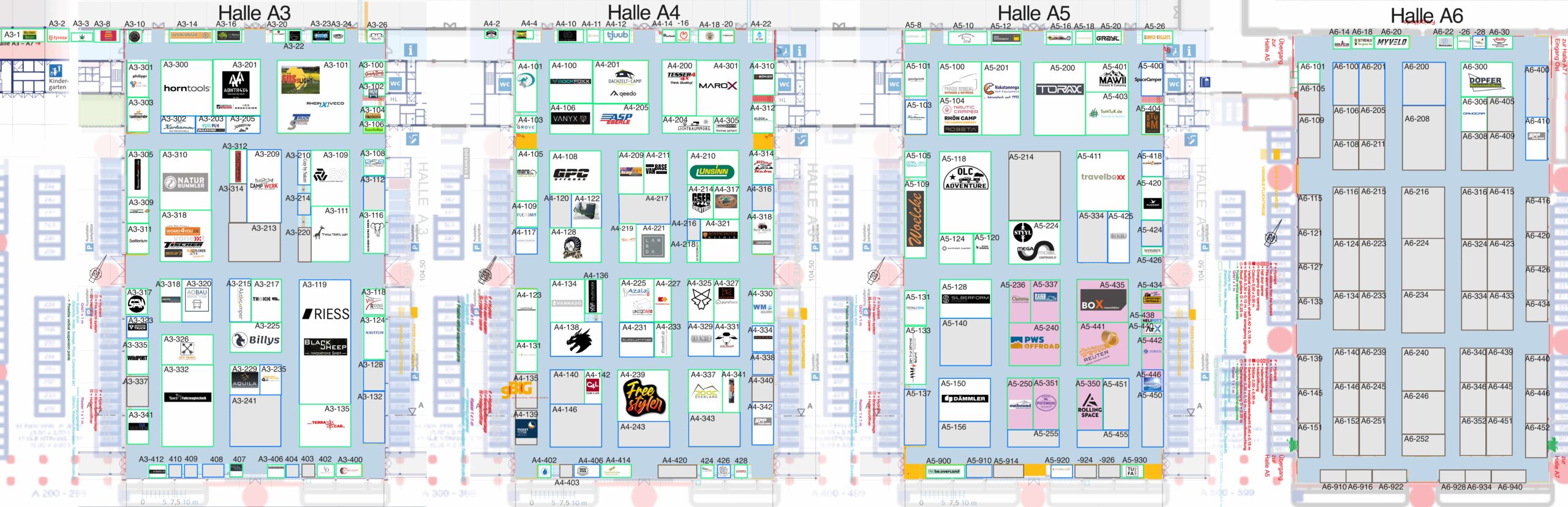 Die Adventure Southside belegt die Hallen A3, A4, A5, A6 und Foyer West sowie das Freigelände West und Ost. Der Eingang für Tagesbesucher ist der “Eingang West” gegenüber vom Messesee und die Camper kommen alle über den Osteingang auf das Messegelände.